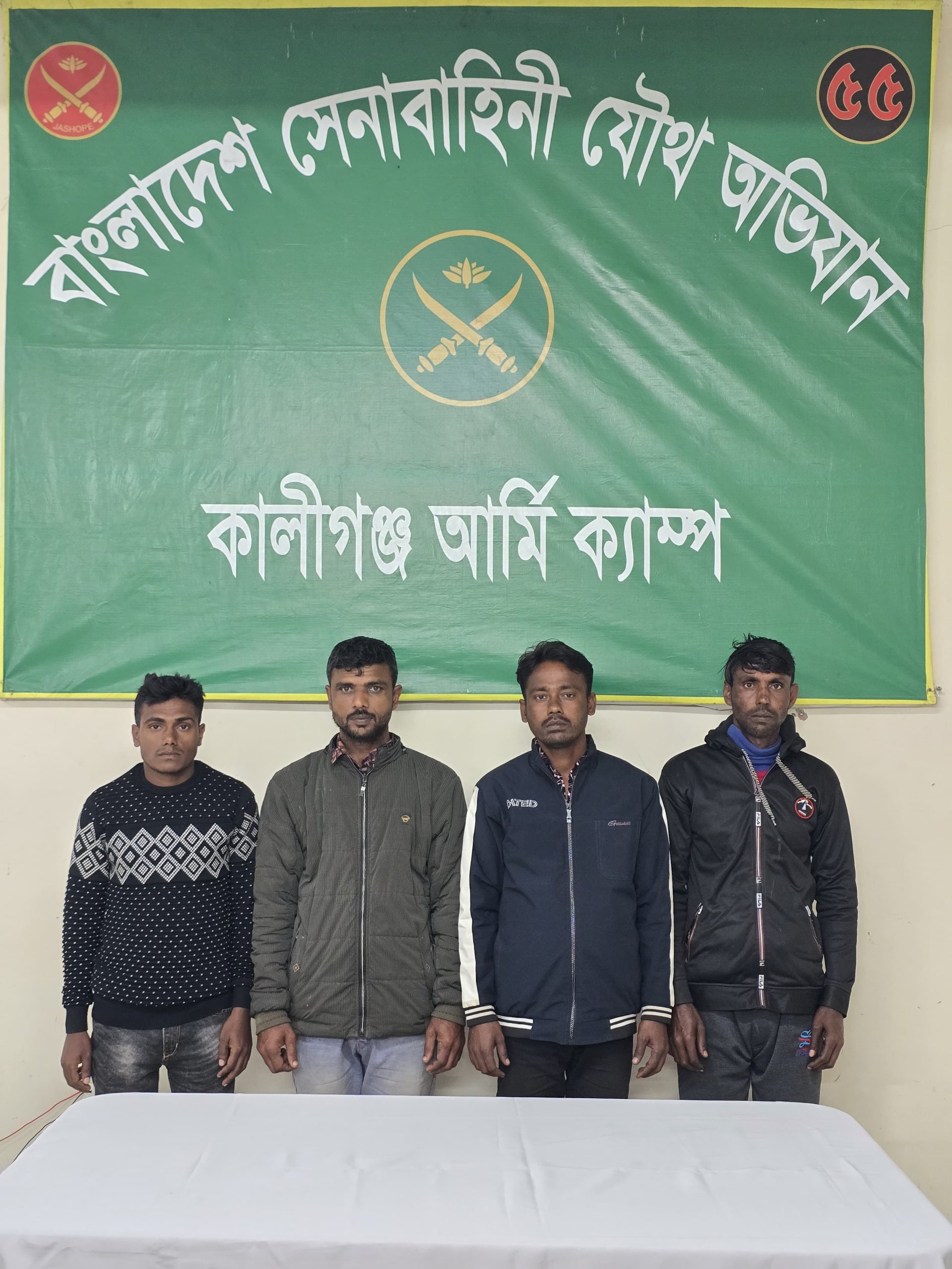 ২১ ডিসেম্বর ২০২৫ খ্রিঃ (০৬ পৌষ ১৪৩২ বঙ্গাব্দ) রাত আনুমানিক ১২টা ৩০ মিনিট থেকে ভোর ৬টা পর্যন্ত শ্যামনগর উপজেলায় চোরাচালানকারীদের গ্রেফতারে বিজিবি ও সেনাবাহিনীর যৌথ বাহিনী একটি সাঁড়াশি অভিযান পরিচালনা করে। অভিযানের সময় ভেটখালী এলাকা থেকে কয়েকজন অপরাধী পালিয়ে যেতে সক্ষম হলেও দিনব্যাপী যৌথ বাহিনীর টানা অভিযান ও গোয়েন্দা তৎপরতার মুখে শেষ পর্যন্ত চারজন অপরাধী কালীগঞ্জ ক্যাম্পে আত্মসমর্পণ করতে বাধ্য হয়।