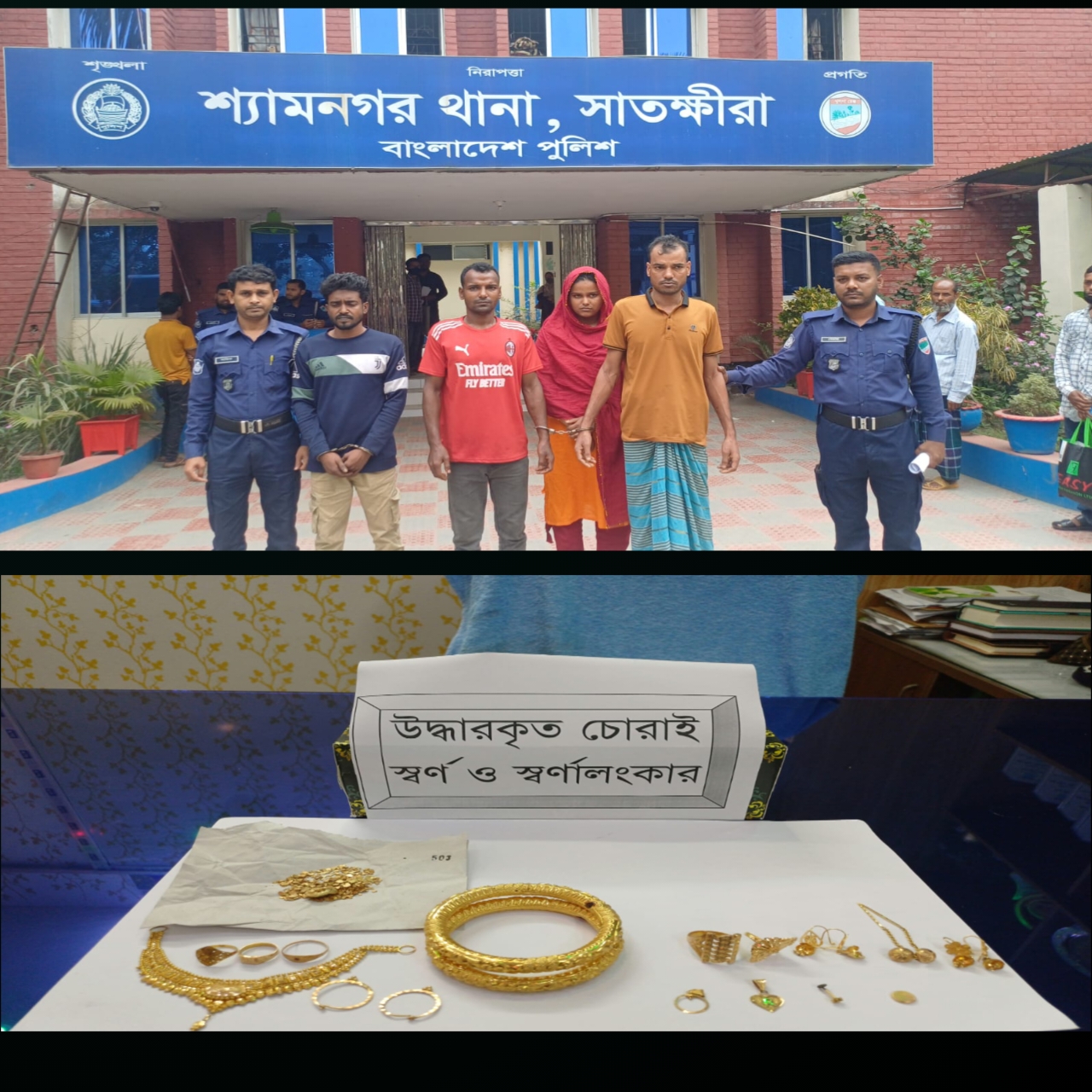 শ্যামনগরে চুরি হওয়া স্বর্ণালংকার উদ্ধার, ৩ আসামি গ্রেফতার