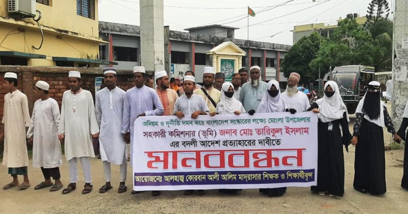 মোংলা উপজেলা সহকারী কমিশনার (ভূমি) মো: তরিকুল ইসলামের বদলি প্রত্যাহারের দাবীতে ক্লাশ বন্ধ রেখে মানববন্ধন কর্মসুচি পালন করেছে মাদ্রাসার শিক্ষক-শিক্ষার্থীরা।