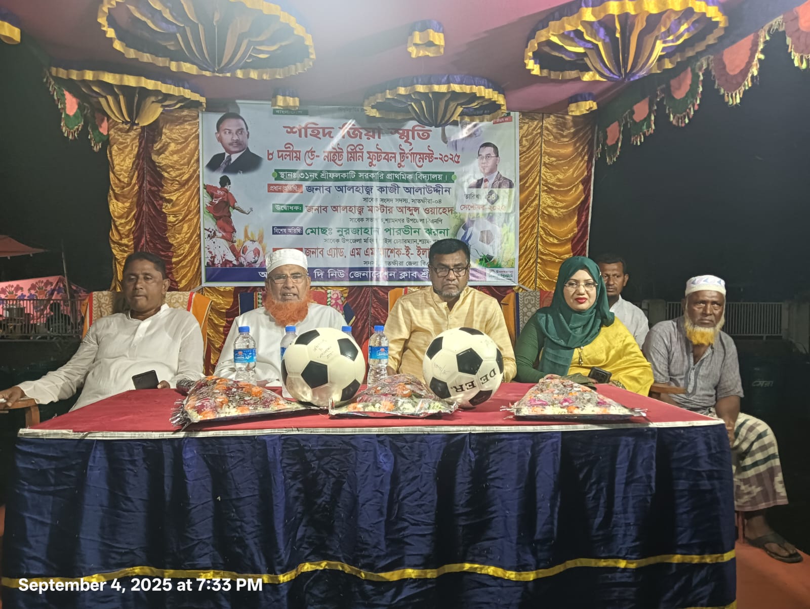 সাতক্ষীরাশ্যামনগর উপজেলা ৩১ নং শ্রীফলকাঠি সরকারী প্রাথমিক বিদ্যালয়ের মাঠে ৮ দলীয় ডে নাইট শহিদ জিয়া স্থৃতি মিনি ফুটবল টুর্নামেন্ট অনুষ্ঠিত হয়েছে।