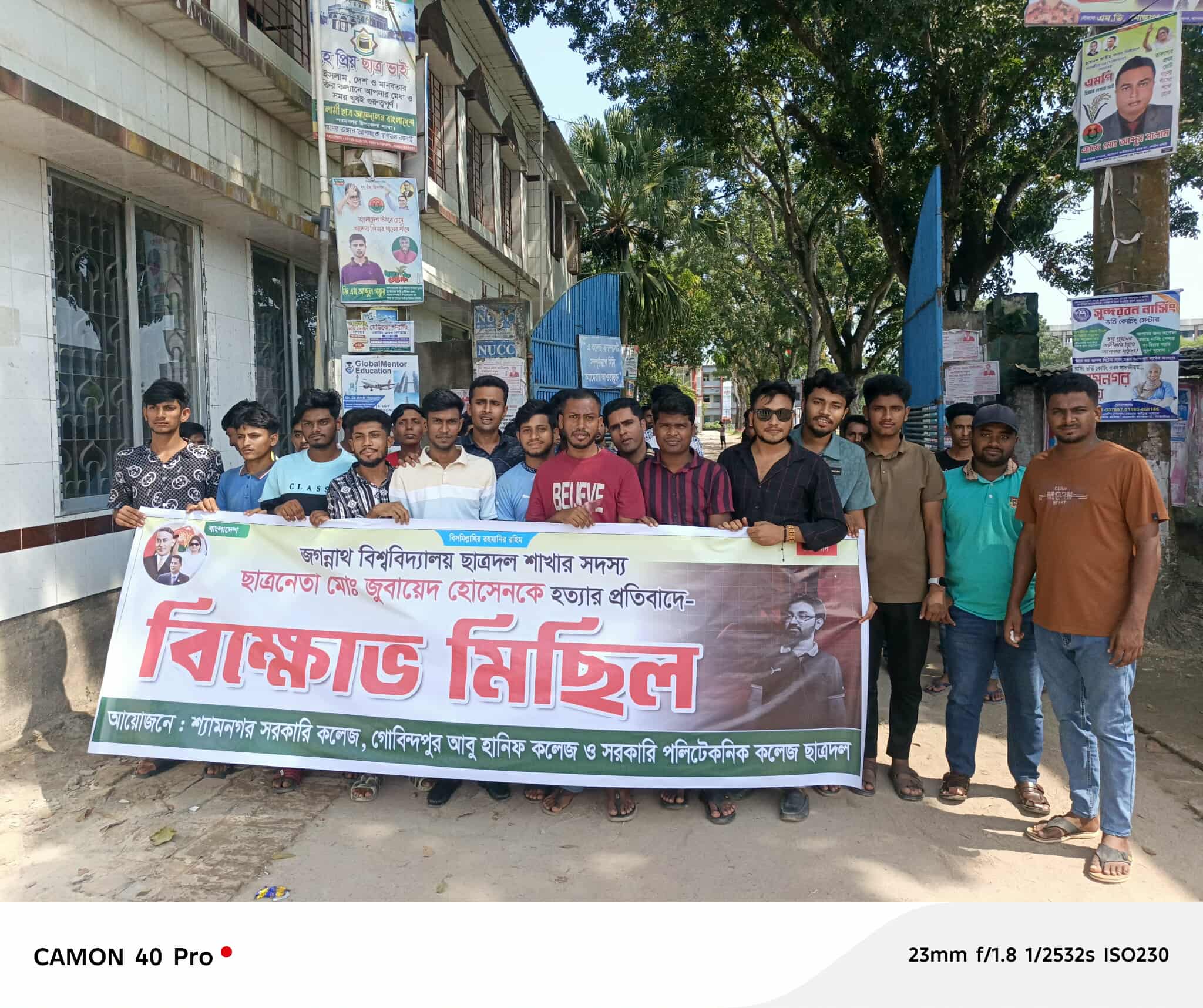 জগন্নাথ বিশ্ববিদ্যালয় ছাত্রদলের আহ্বায়ক সদস্য মোঃ জুবায়েদ হোসেনকে নির্মমভাবে হ/ত্যা/র প্রতিবাদে বিক্ষোভ মিছিল অনুষ্ঠিত হয়