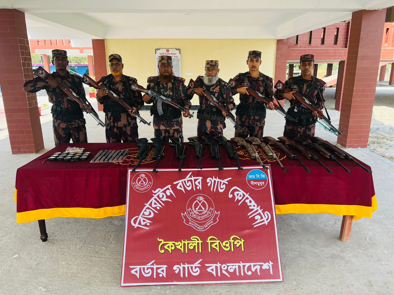 বিওপি থেকে আনুমানিক ২ কিলোমিটার দক্ষিণে এবং শূন্য লাইন থেকে প্রায় ২ কিলোমিটার পূর্ব দিকে কৈখালী এলাকার গোলাখালী নদীর পাড়ে একটি চিংড়ি ঘেরের কোণায় মাটির নিচে পুঁতে রাখা অবস্থায় এসব অস্ত্র ও সরঞ্জাম উদ্ধার করা হয়। উদ্ধারকৃত সামগ্রীর মধ্যে রয়েছে ১২টি এয়ারগান, ১৫ বক্স এয়ারগানের গুলি, ৭টি স্প্রিং, ৪০টি পিস্টন হোল্ডার ও ১৬টি এলকে রেঞ্জ। এসব সামগ্রীর আনুমানিক বাজারমূল্য প্রায় ৫ লাখ ১৪ হাজার ৬০০ টাকা।