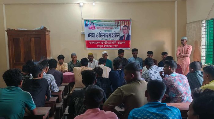 রিপোর্ট: ভয়েস অফ সুন্দরবন “শিক্ষা, ঐক্য, প্রগতি” এই মূলমন্ত্রকে ধারণ করে সাতক্ষীরার শ্যামনগর উপজেলার গাবুরা ইউনিয়নে অনুষ্ঠিত হলো বাংলাদেশ জাতীয়তাবাদী ছাত্রদলের আয়োজিত দোয়া ও মিলাদ মাহফিল। ২২ জুলাই ২০২৫,