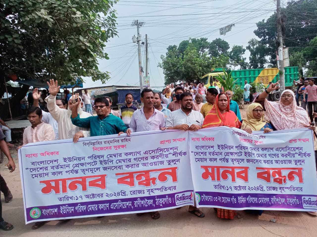 ঠাকুরগাঁওয়ে রাণীশংকৈলে ইউপি সদস্যদের অপসারণ না করার দাবিতে মানববন্ধন ।
