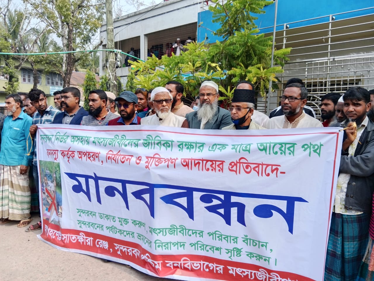 সুন্দরবনে বনদস্যু নির্মূলে উপকূলীয় জেলে বাওয়ালিদের মানববন্ধন ও সমাবেশ ।।
