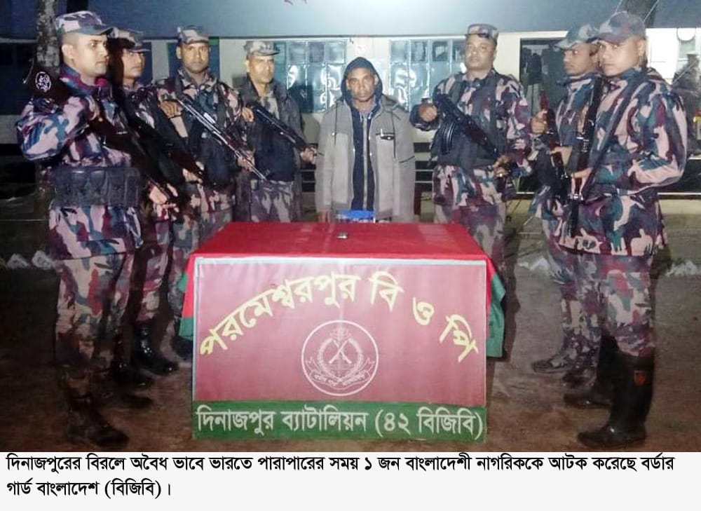 বিরলে অবৈধ ভাবে ভারতে পারাপারের সময় বিজিবি’র হাতে আটক-১