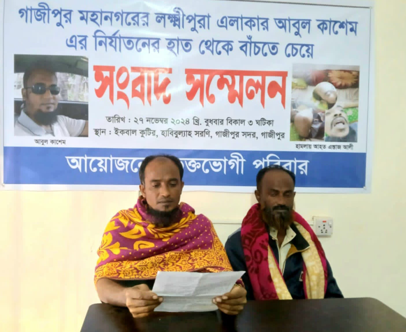 গাজীপুরে যুবলীগ নেতার ভয়ে ঘরছাড়া অসহায় ব্যবসায়ীর সংবাদ সম্মেলন