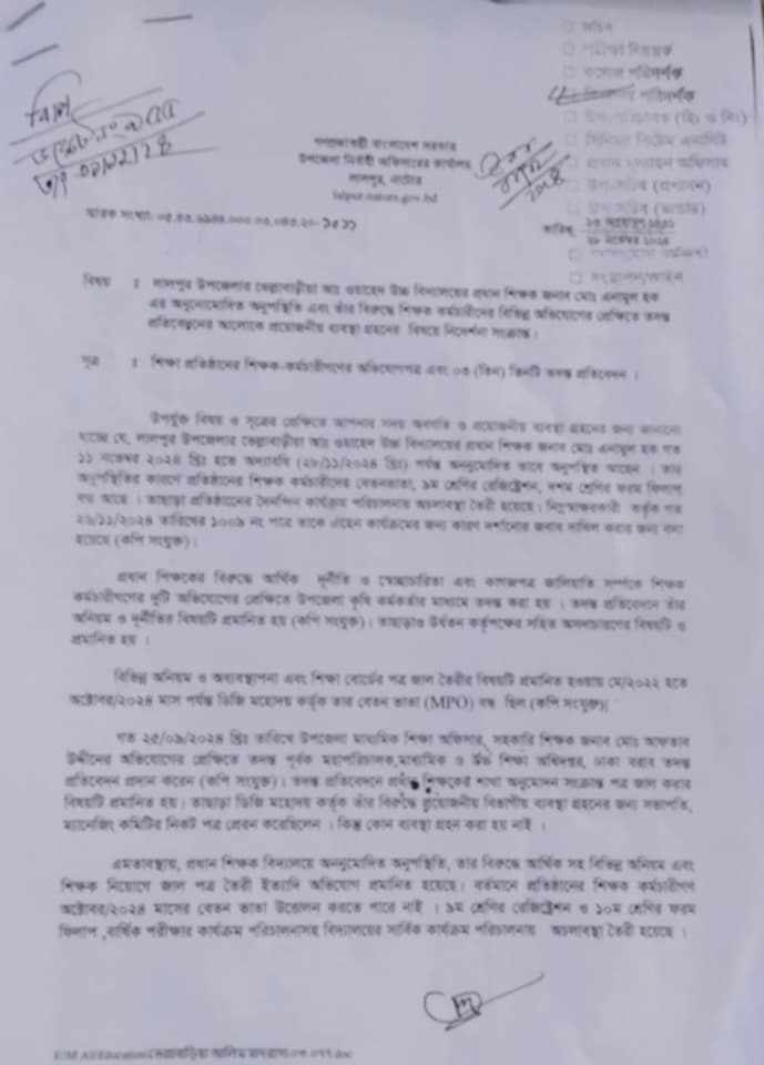লালপুরে প্রধান শিক্ষক এনামুল হকের অনিয়ম-দুর্নীতির সত্যতা পেয়ে তদন্ত প্রতিবেদন দাখিল