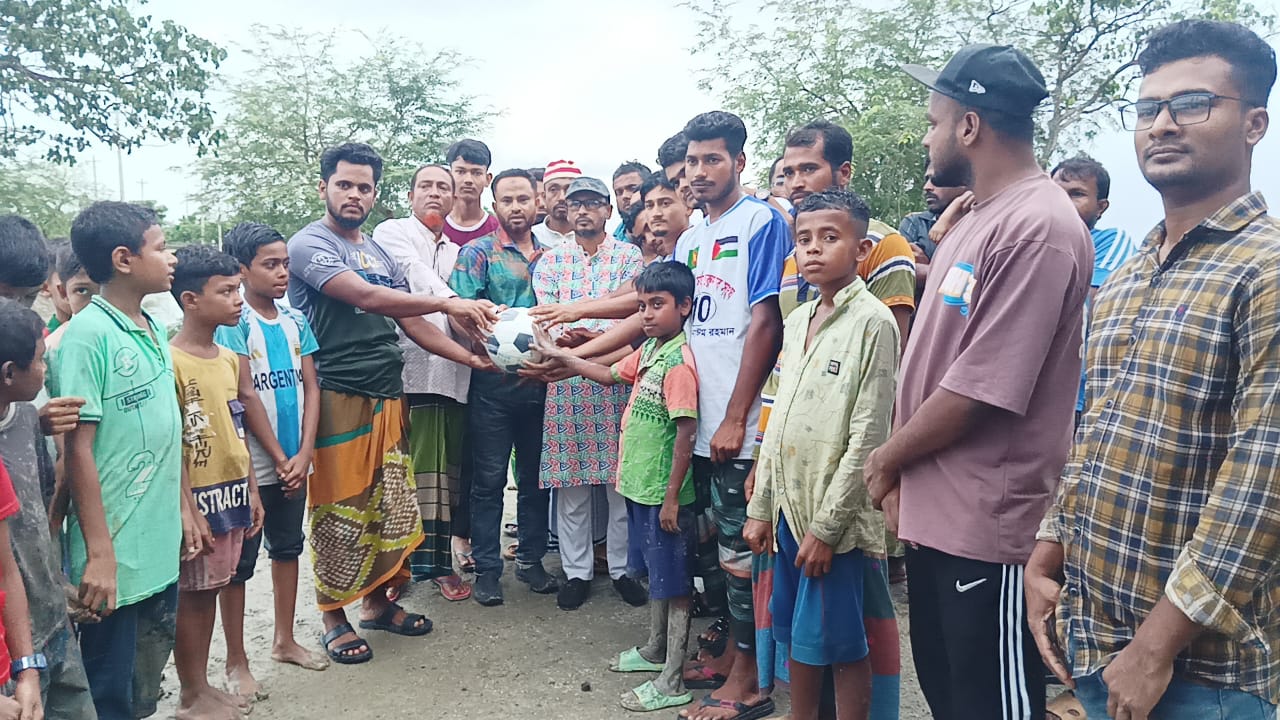 সীমান্তবর্তী শ্যামনগর দুরমুজখালী ডি এম সি ক্লাব কে ফুটবল উপহার দিলো উপজেলা রিপোর্টার্স ক্লাব