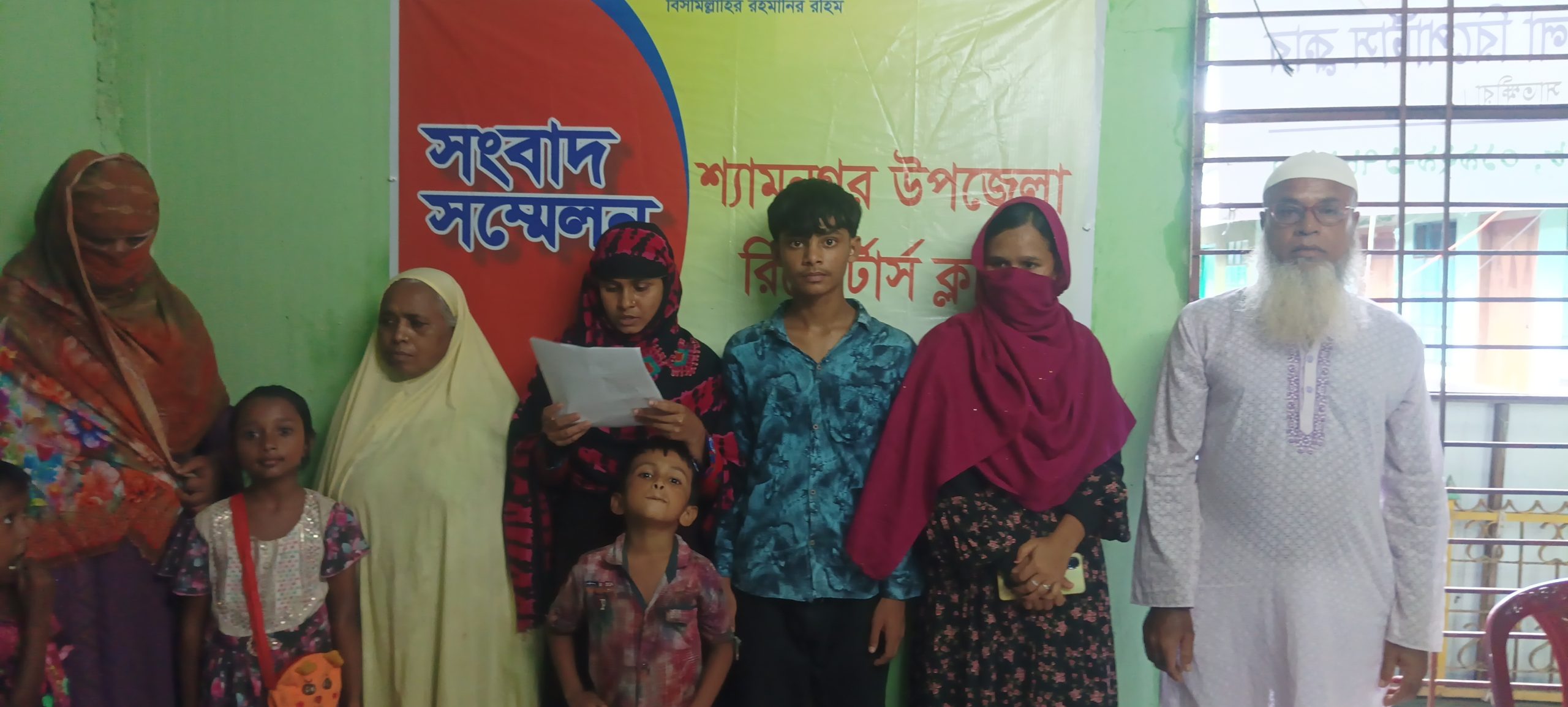 শ্যামনগরে স্বামী হত্যার আসামীদের আটকের দাবীতে স্ত্রীর সংবাদ সম্মেলন