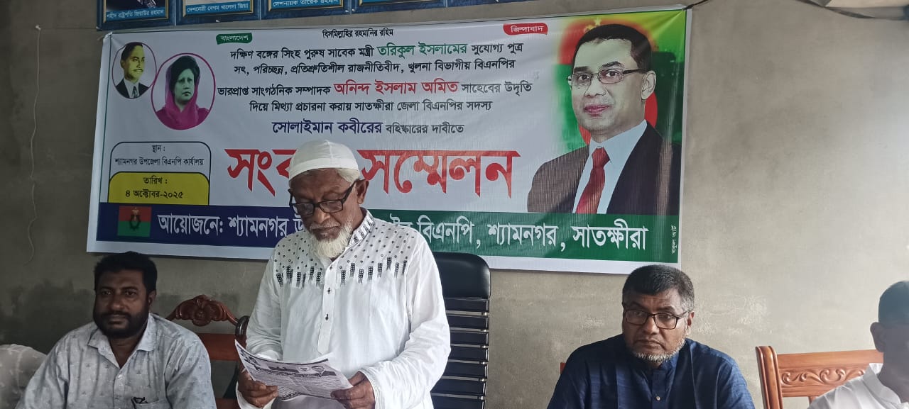 বিএনপিনেতা সোলাইমান কবীরের বহিষ্কারের দাবীতে শ্যামনগর বিএনপি কার্য্যালয়ে সংবাদ সম্মেলন অনুষ্ঠিত হয়েছে