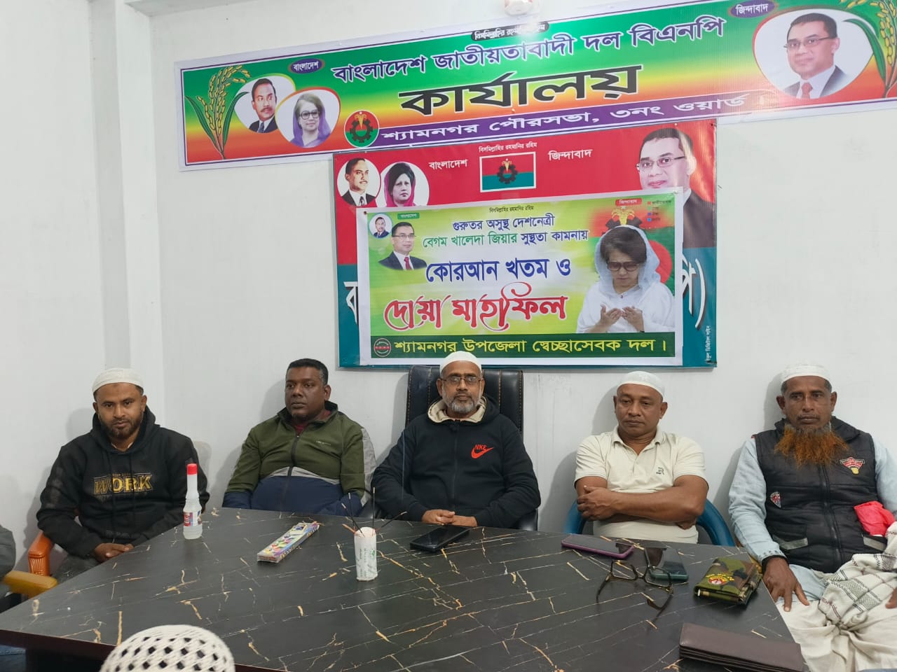 বেগম খালেদা জিয়ার সুস্থতা কামনায় শ্যামনগরে স্বেচ্ছাসেবক দলের কোরআন খতম ও দোয়া মাহফিল অনুষ্ঠিত।